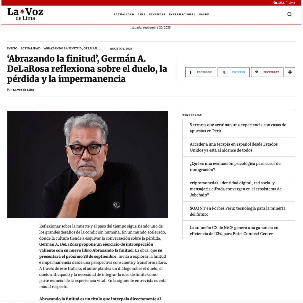 La voz de Abrazando la Finitud ha cruzado fronteras… Aquí algunos medios que abrieron este diálogo sobre duelo, pérdida y esperanza.